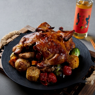 참나무 장작으로 구워낸 닭 장작 구이