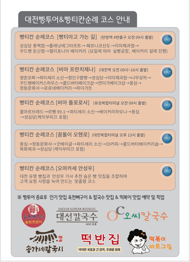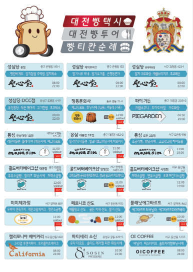 코스 안내 메뉴판에는 대전의 유명 빵집들이 정리되어 있습니다.