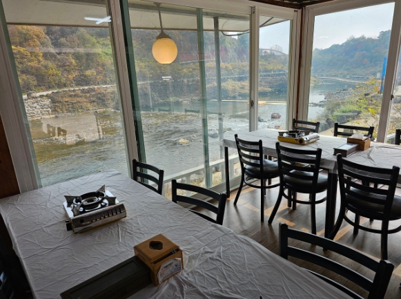 이곳은 직탕폭포 유원지 안에 위치한 민물고기 매운탕 전문점으로, 한탄강의 아름다운 경치를 바라보며 식사를 즐길 수 있는 것이 특징입니다.