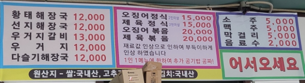✔ 오징어정식 (황태해장국 포함 제공) - 15,000원