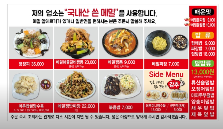 강원도 평창 봉평의 한적한 시골 마을을 들썩이게 만든 산더미 비주얼의 중식당이 방송을 통해 화제를 모으고 있습니다. 평창 봉평 맛집, 메밀면 중식, 해물갈비짬뽕 한정판매 정보까지 정리해 드립니다.