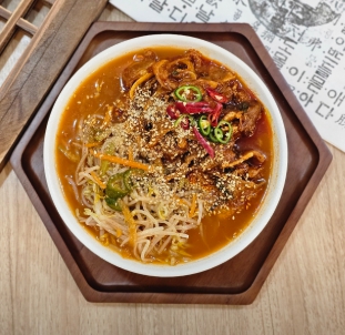 - 제육칼국수: 칼칼한 국물에 매콤달콤한 제육볶음이 듬뿍 올라간 중독성 강한 별미
